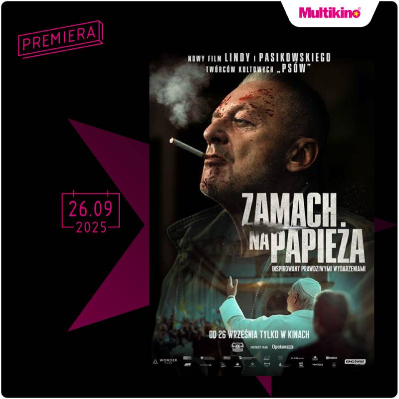 Od 26 września na widzów w kinach sieci Multikino będą czekały aż trzy premierowe propozycje – „Zamach na papieża” z Bogusławem Lindą, „Jedna bitwa po drugiej” z Leonardo DiCaprio oraz japoński thriller „Exit 8” . Ponadto 27 i 28 września przedpremierowo będzie można zobaczyć „Koci domek Gabi”. Szczegółowy repertuar jest dostępny na stronie www.multikino.pl.